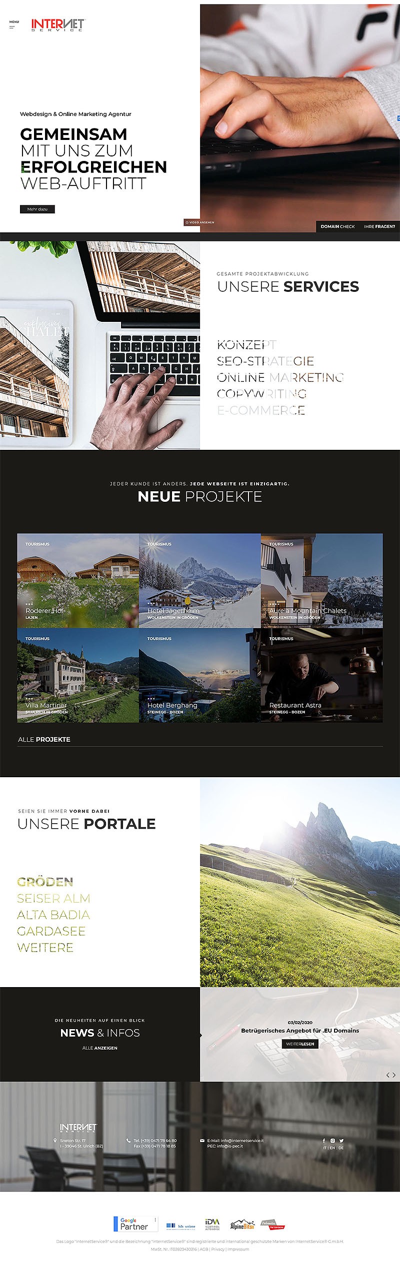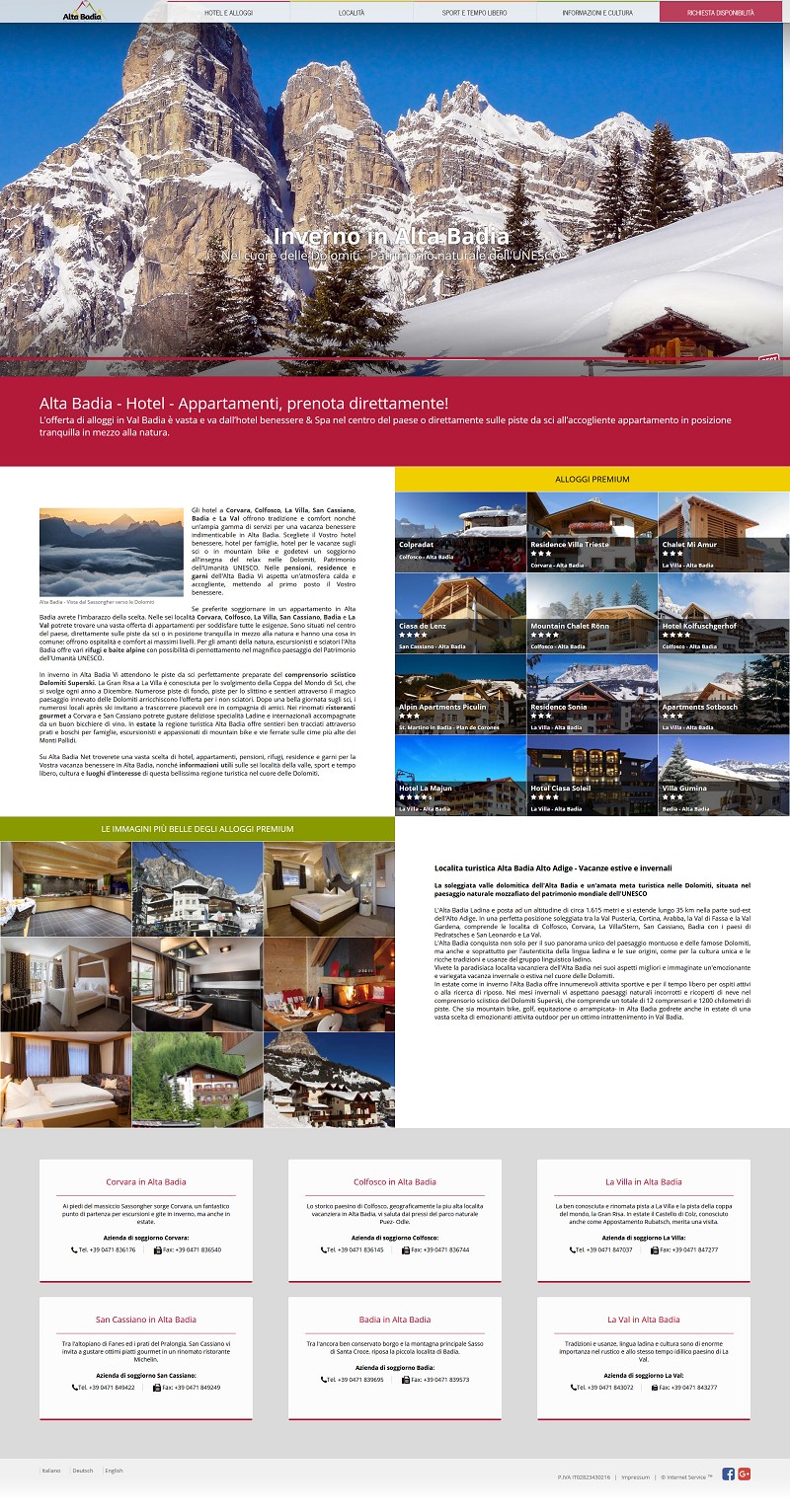 Siti internet nei settori: turismo, servizi, industria e artigianato, attività sportive, associazioni, negozi online e portali.
